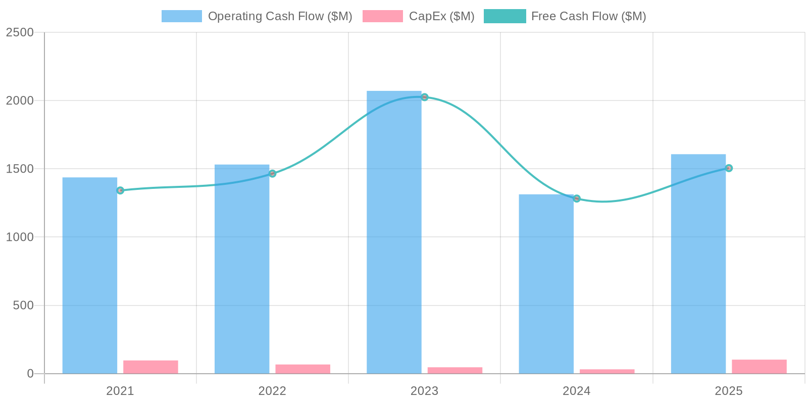 Operating cash flow has generally increased over the past five years, reflecting the growth and stability of the business. Free cash flow (FCF) conversion is strong and aligns closely with net income, further supporting the quality of earnings. A forensic analysis of cash flow trends reveals consistent positive cash generation from operations, providing financial flexibility. However, significant cash is used for stock repurchases, impacting overall cash levels. While capital expenditure is relatively stable, acquisitions net are variable but strategically managed. Analyzing the cash flow from investing activities reveals strategic acquisitions that support long-term growth.