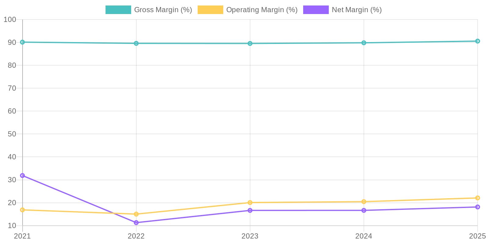 The company's asset turnover is relatively low but stable. The increasing revenue trend against a backdrop of rising total assets suggests improvements in capital efficiency over time. Goodwill and Intangible Assets constitute a significant portion of the total assets, potentially impacting the return on assets (ROA). The company's ability to generate increasing profits on a growing asset base needs to be carefully evaluated, especially focusing on the utilization of its intangible assets.