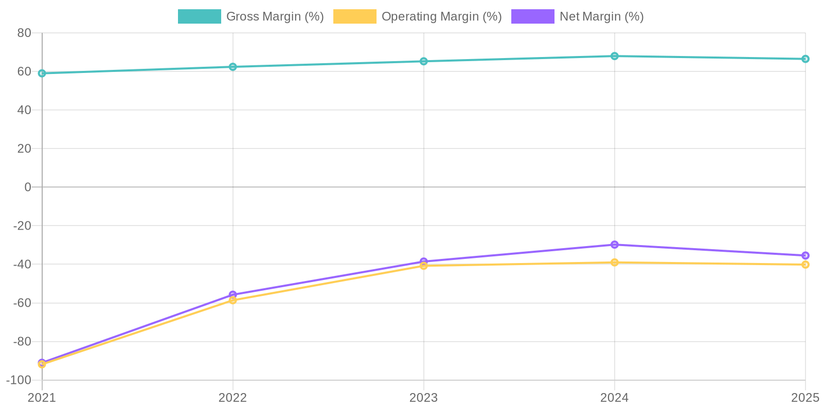 Consistent net losses despite revenue growth.