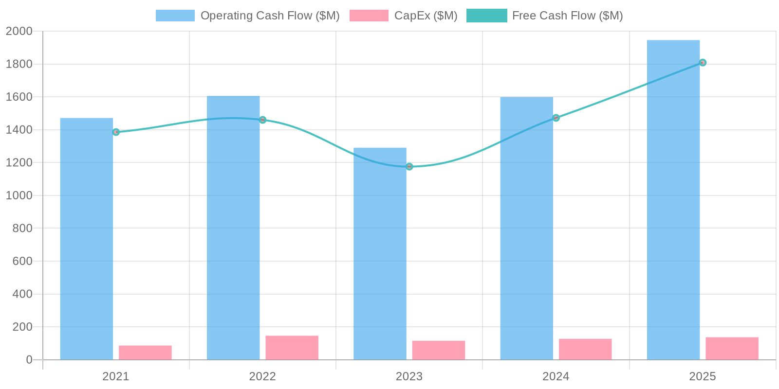 The company exhibits strong free cash flow (FCF) conversion, with FCF consistently high. In 2025 the free cash flow was $1.8B. This indicates a healthy ability to generate cash from its operations. However, in 2025 the company used substantial cash for common stock repurchases (-$1.094B), and this could impact its liquidity.