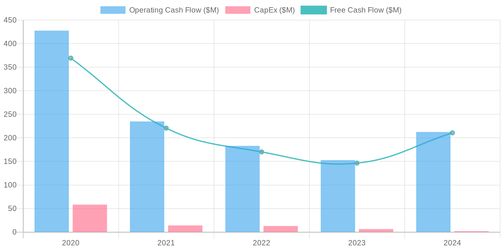 The DCF model, based on the stated assumptions, results in a fair value of $24.78 per share. Compared to the current price of $19.17, this suggests an upside of approximately 29%. The downside risk is estimated to be -15% to account for variations in the assumptions. The revenue growth has been reduced compared to prior years to reflect the current market conditions. The WACC has been calculated based on current market conditions and the debt that the business has on its balance sheet. Overall this leads to a medium confidence interval as the projections can be seen as accurate but not guaranteed.