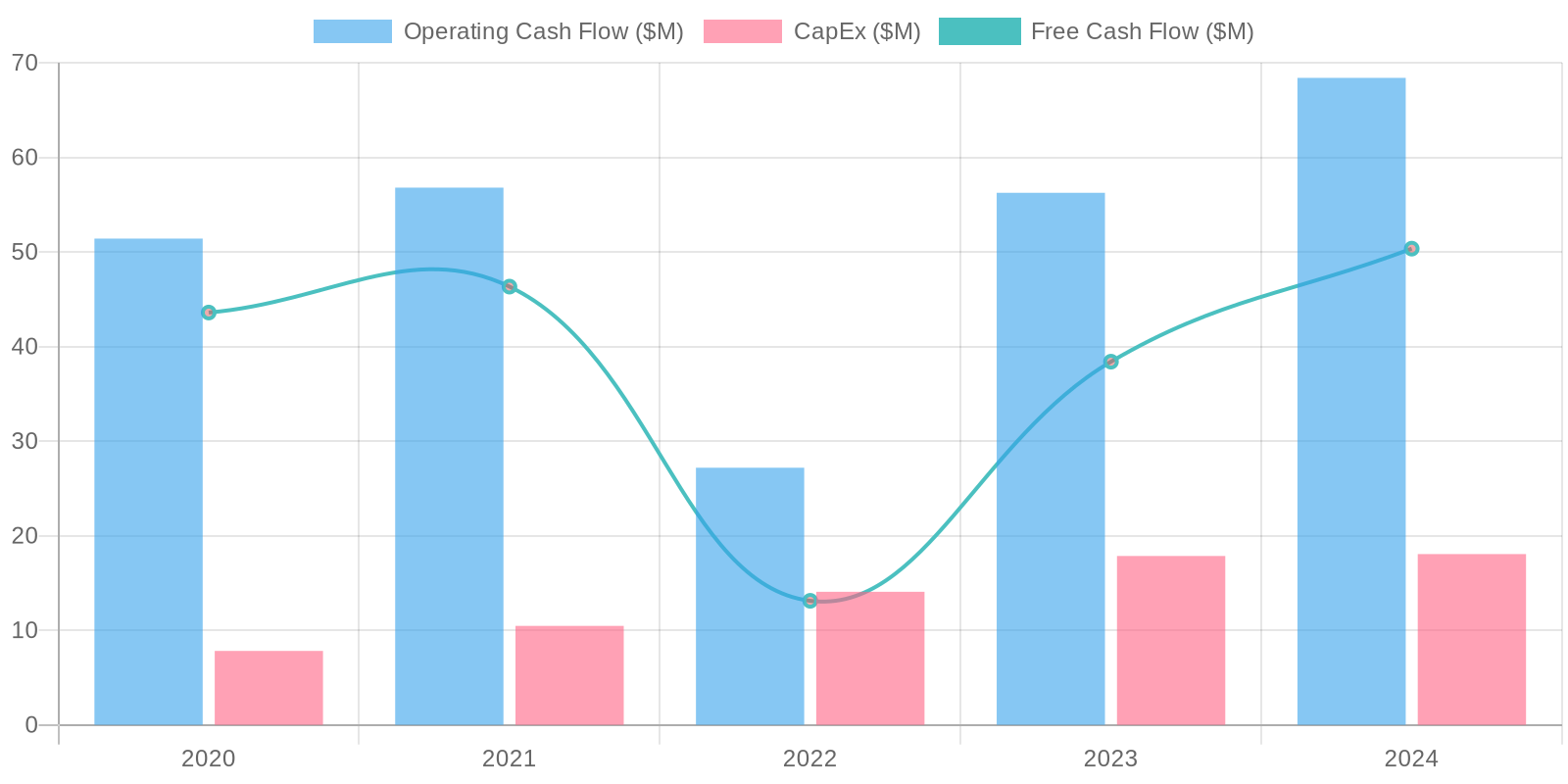 The company demonstrates positive free cash flow (FCF) generation in 2024 despite reporting a net loss, suggesting effective management of working capital and non-cash items. However, the volatility in net income is not fully reflected in the FCF, signaling a potential disconnect. Capital expenditure (CAPEX) remained relatively stable, which points towards the business requiring consistent level of investment to maintain operations. Investigating large swings in working capital or other non-cash items is essential for determining the quality of cash flows.