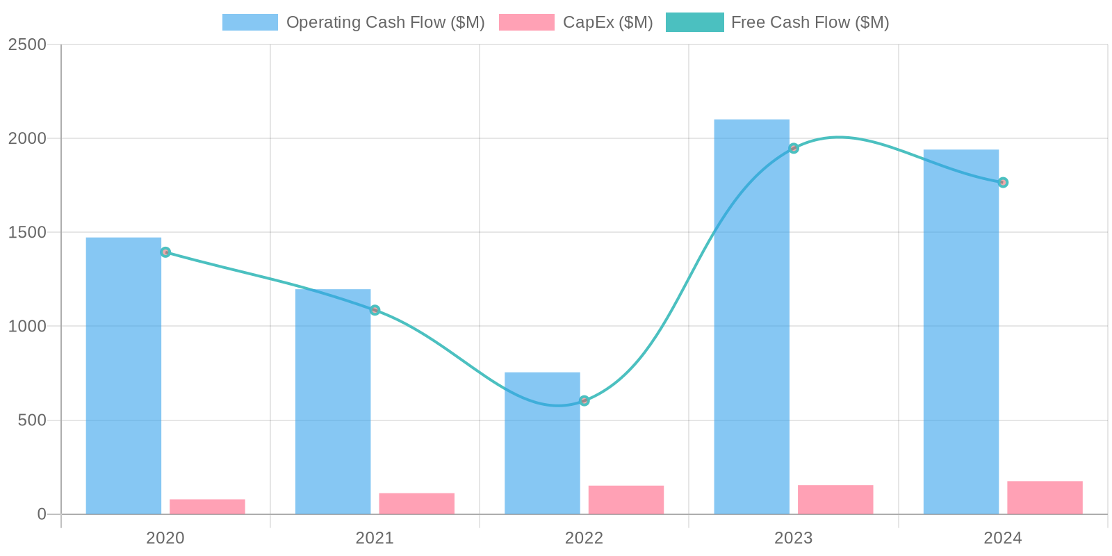 The company exhibits a strong free cash flow (FCF) generation ability, with $1,765,389,000 reported in 2024 and $1,947,310,000 the previous year. This indicates efficient cash conversion from its operations. Capital expenditure, at -$175,176,000 in 2024, indicates continuous investment in its assets, which will support future revenue generation. Analyzing the trend of FCF relative to net income provides insights into the quality of earnings and the sustainability of cash flows.