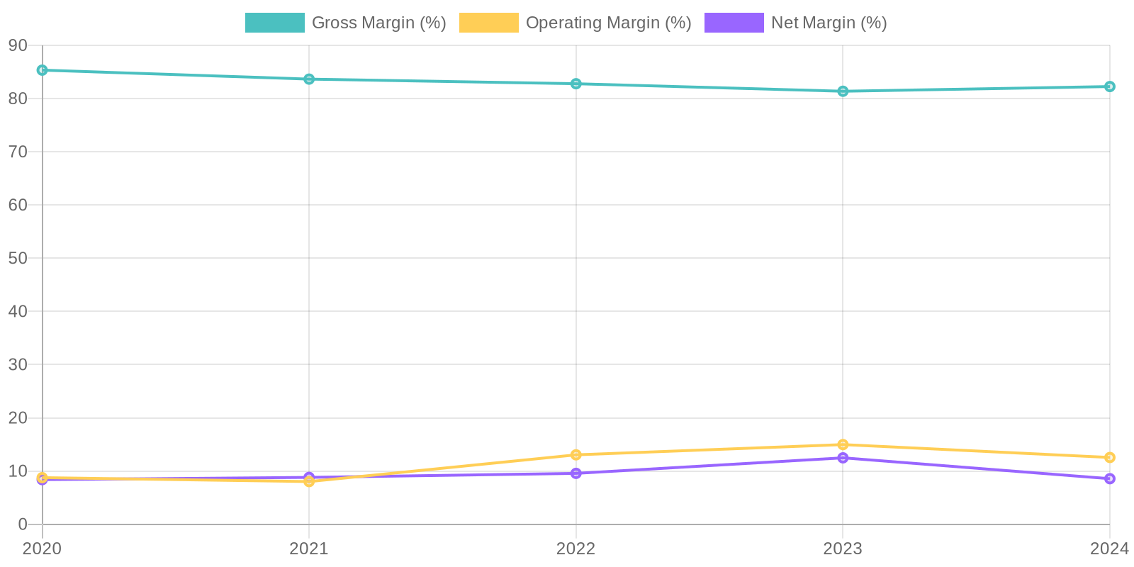 The company has demonstrated consistent revenue growth over the past five years, indicating a potentially strong market position. A deeper investigation into the specific revenue streams, including subscription models versus one-time sales, would be required to assess the predictability of future revenue. Further analysis should focus on client concentration to ensure revenue is not overly dependent on a small number of customers, which could pose a risk to sustainability.