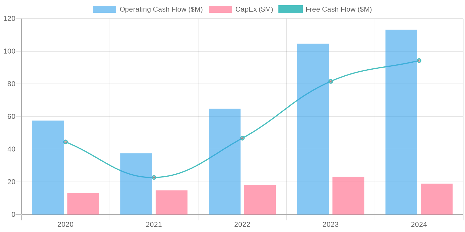 The company's free cash flow (FCF) generation is a positive sign, with FCF reported as $94.256 million for the most recent year, and positive FCF in previous years. However, the company has been making acquisitions, which can be a drain on cash flow. Capital expenditures should be compared to depreciation and amortization to see if the company is investing enough to maintain its current asset base.