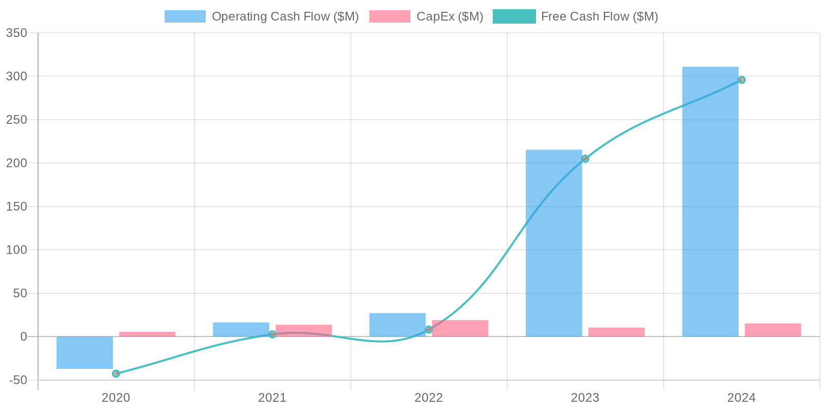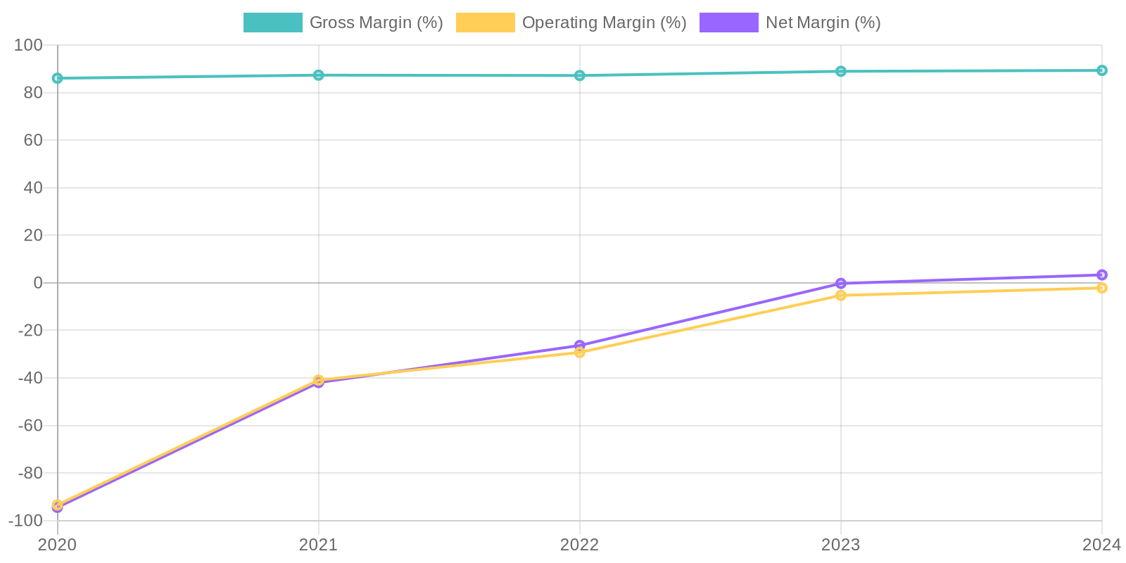 The company has shown consistent revenue growth over the past five years, indicating a strengthening market presence. The transition from negative net income to positive net income, suggests the company's revenue growth is becoming more efficient. Further investigation into the proportion of recurring revenue versus one-time sales is needed to fully assess sustainability, as well as analysis of customer concentration to evaluate dependence on key clients.