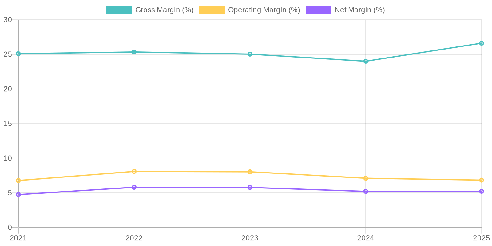 The company has demonstrated consistent revenue generation over the past five years, with a recent increase in 2025. However, the limited information available prevents a comprehensive analysis of the revenue's recurring nature, client concentration, or long-term sustainability. Further investigation is necessary to determine the proportion of revenue derived from subscriptions, long-term contracts, or a diversified client base to accurately assess its reliability and predictability.