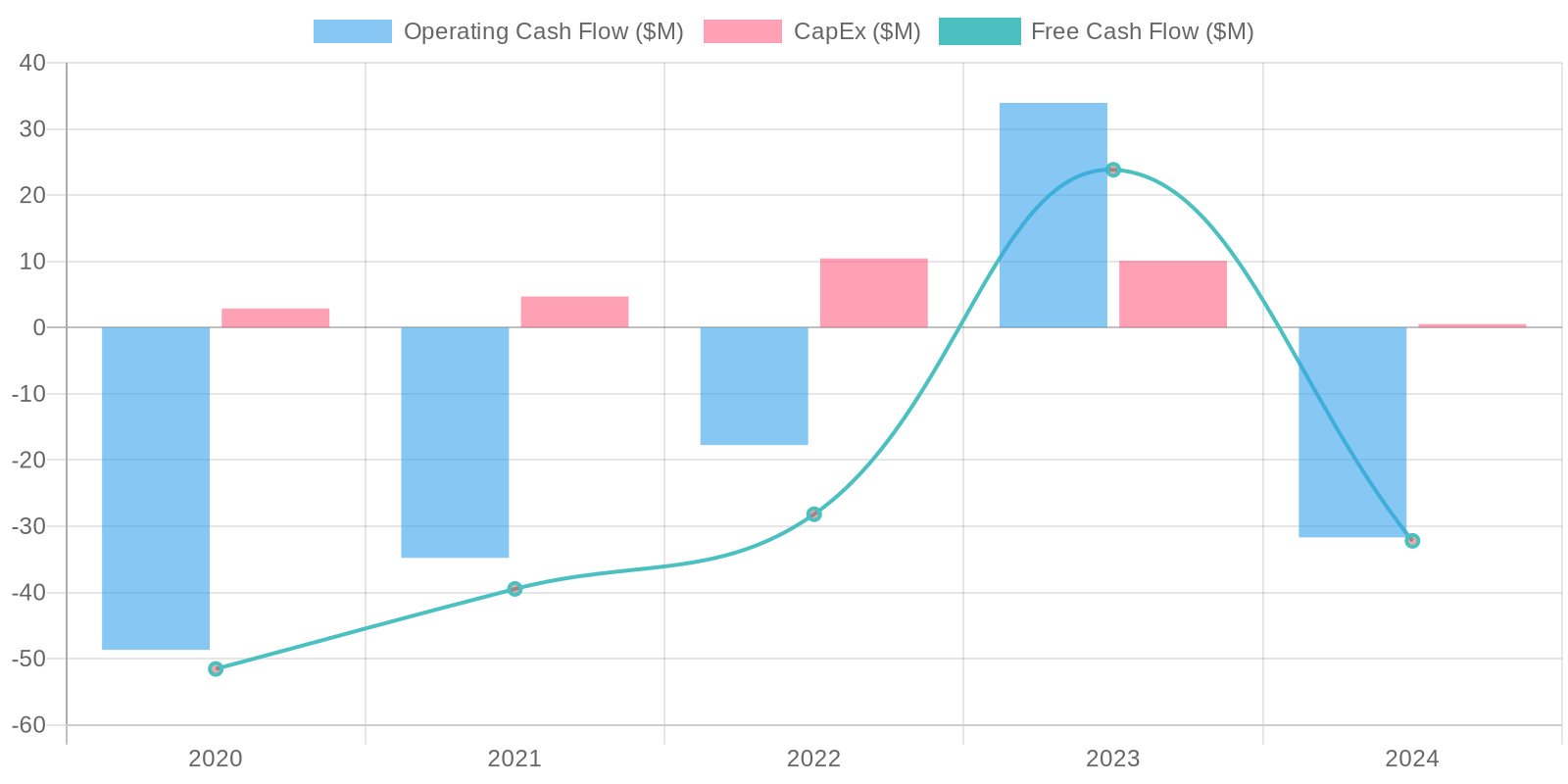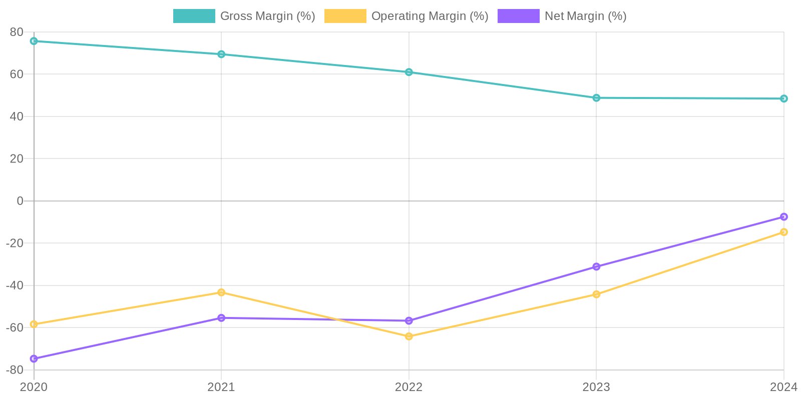 Given the company's negative net income for all reported periods, Return on Equity (ROE) is also negative, indicating inefficiency in generating profit from shareholder equity. Similarly, Return on Invested Capital (ROIC) would also be negative, reflecting the company's struggles in generating returns from its invested capital. The negative profitability makes it difficult to assess how efficiently the company is using its capital.