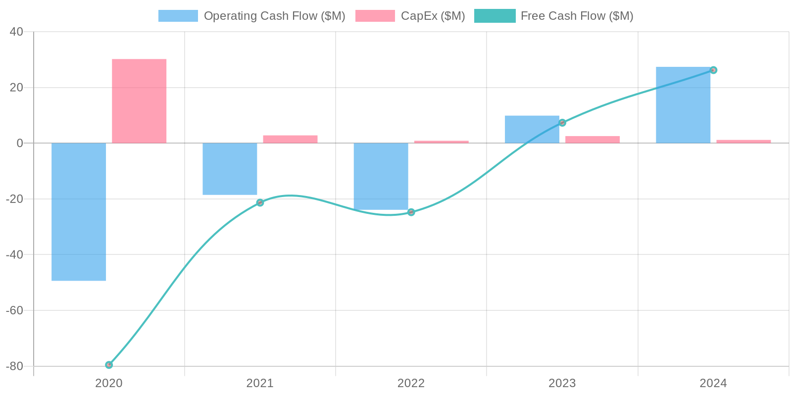 The company's free cash flow (FCF) has been inconsistent over the past five years. In 2024 FCF was 26.217 million. Capital expenditure remained relatively stable. The company will need to focus on improving its operating cash flow and manage its capital expenditures effectively to achieve sustainable positive free cash flow.