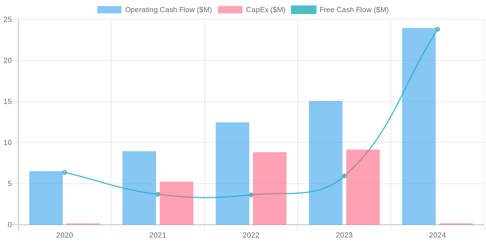 The company exhibits strong Free Cash Flow (FCF) generation, with $23.79 million in 2024, demonstrating its ability to convert revenue into cash. Capital expenditure appears well managed, with investments in property, plant, and equipment remaining relatively low at -$169,000 in 2024, suggesting the company may not require heavy reinvestment to support growth. Analyzing the consistency and growth of FCF over time will provide insights into the long-term sustainability of its cash-generating abilities.