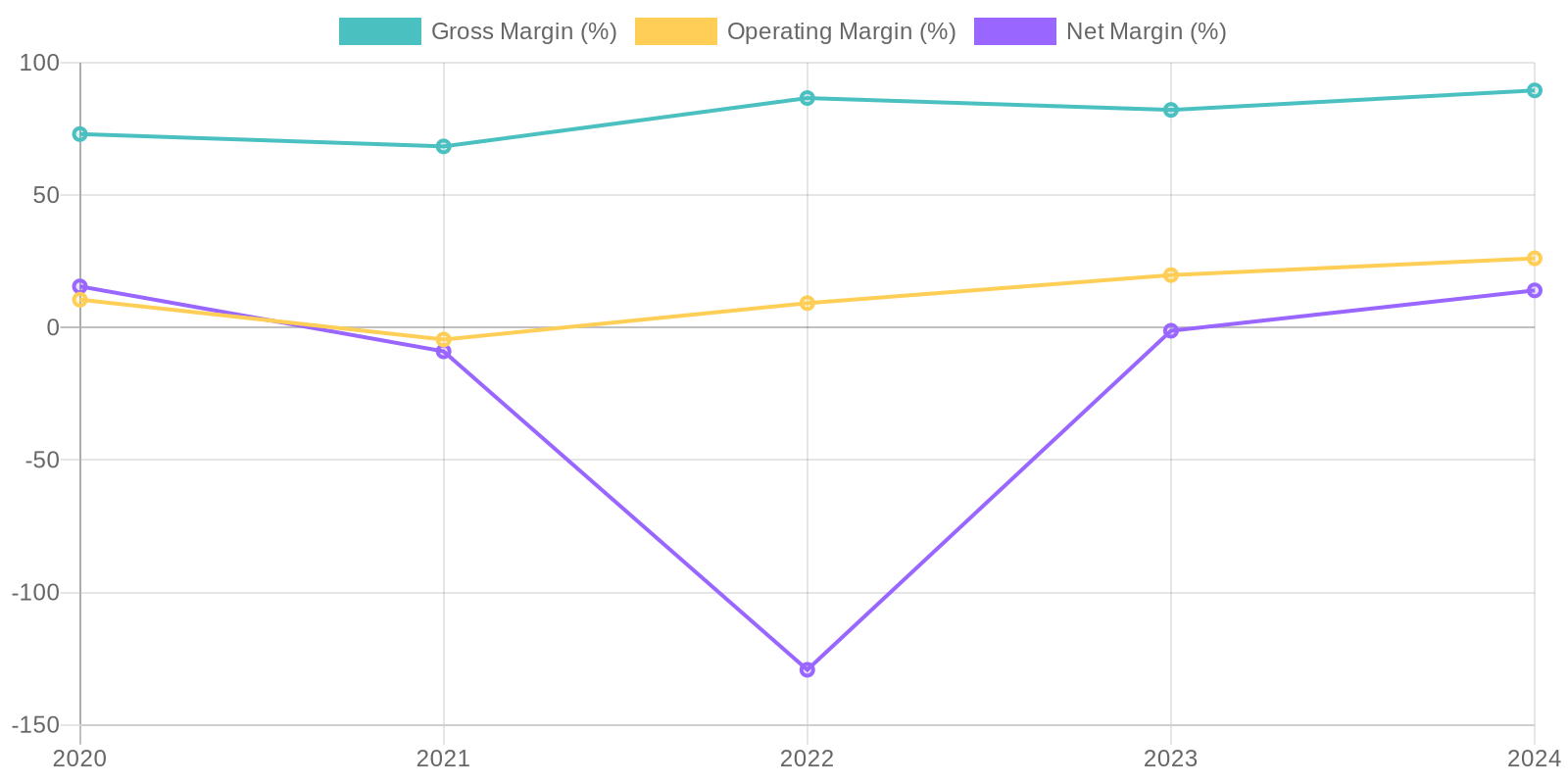 Large swings in operating and net margins indicate potential issues with cost control, pricing strategies, or expense management.