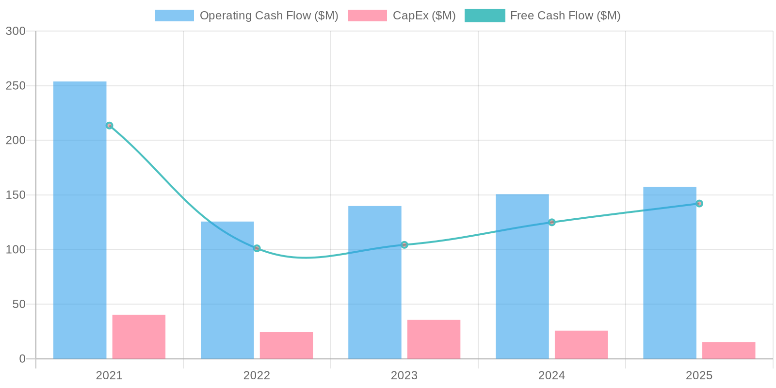 Free cash flow has been generally positive, though fluctuating, indicating the company's ability to generate cash after capital expenditures. Capital expenditure appears relatively stable, suggesting consistent investment in property, plant, and equipment. The conversion of net income to operating cash flow varies, influenced by non-cash items such as depreciation and stock-based compensation, as well as changes in working capital.